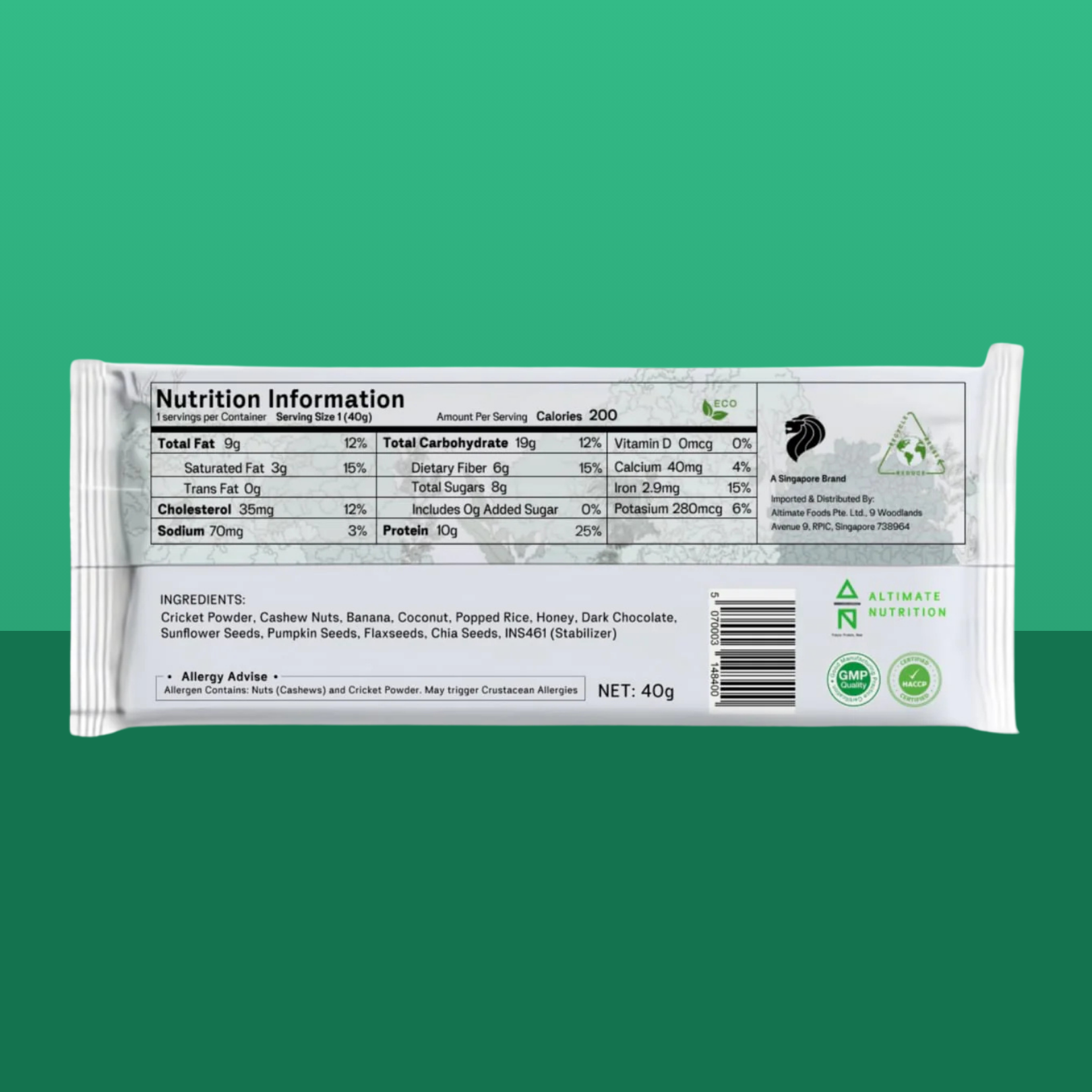 Indulge in the perfect blend of rich dark chocolate and sweet banana with our Banana Chocolate Cricket Granola Bar. Crafted from the finest ingredients, including cricket powder for a sustainable protein boost, this bar is not only delicious but also packed with nutrients.